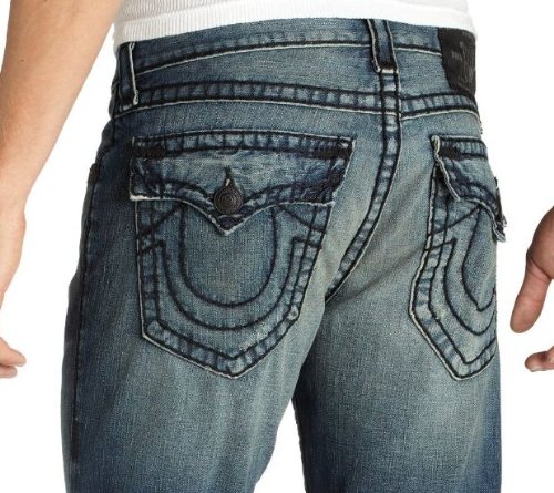| True Religion Brand Men's Joey Super T Jeans Features; Dark Wash Oversized Black Stitching Stitched Horseshoe On Back Pockets Fabric- 100% Cotton Measurements - taken With Jeans lying flat 34" Inseam, 11" Leg Opening ...Read more |